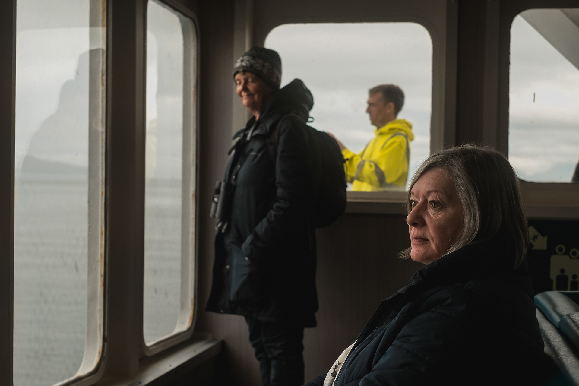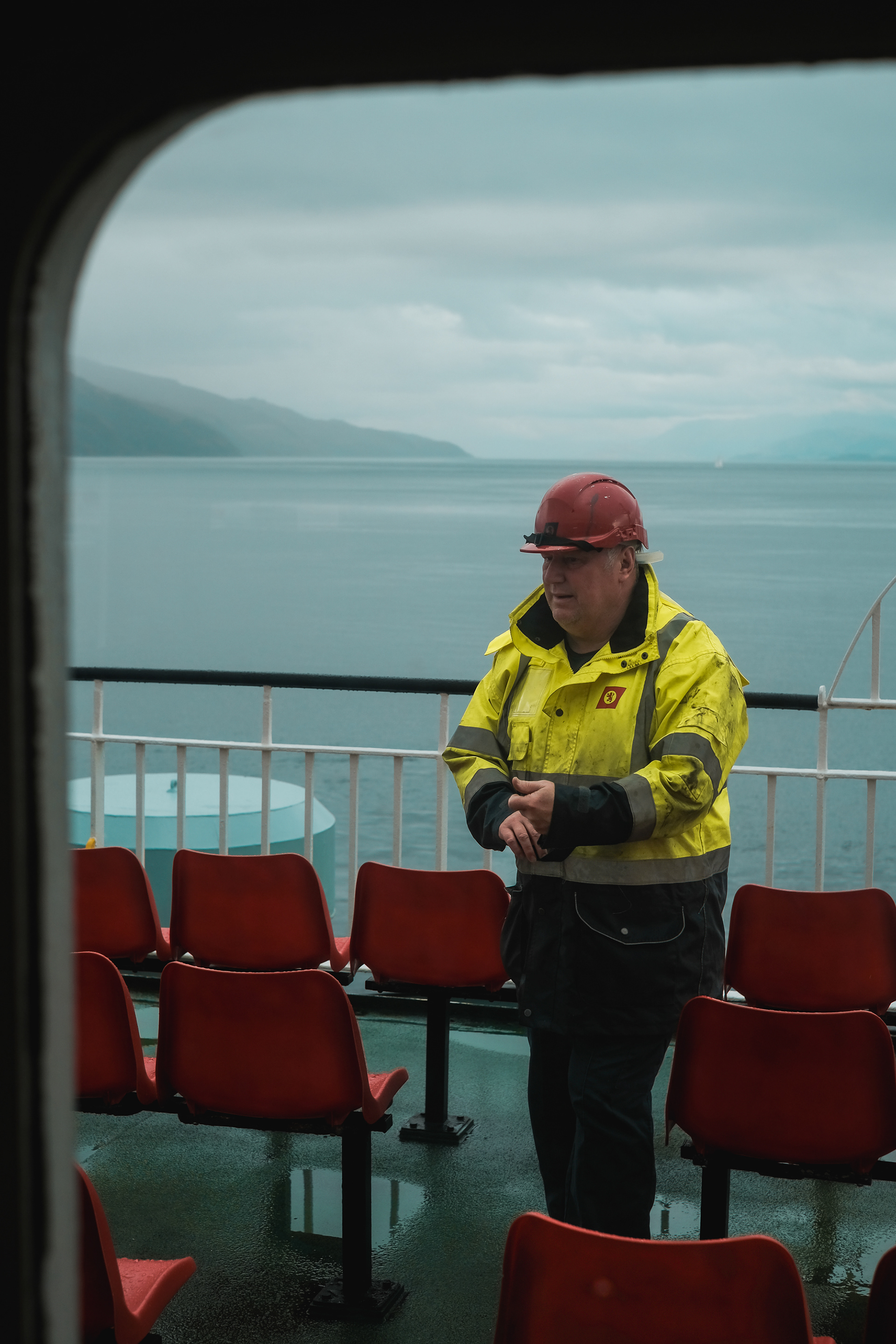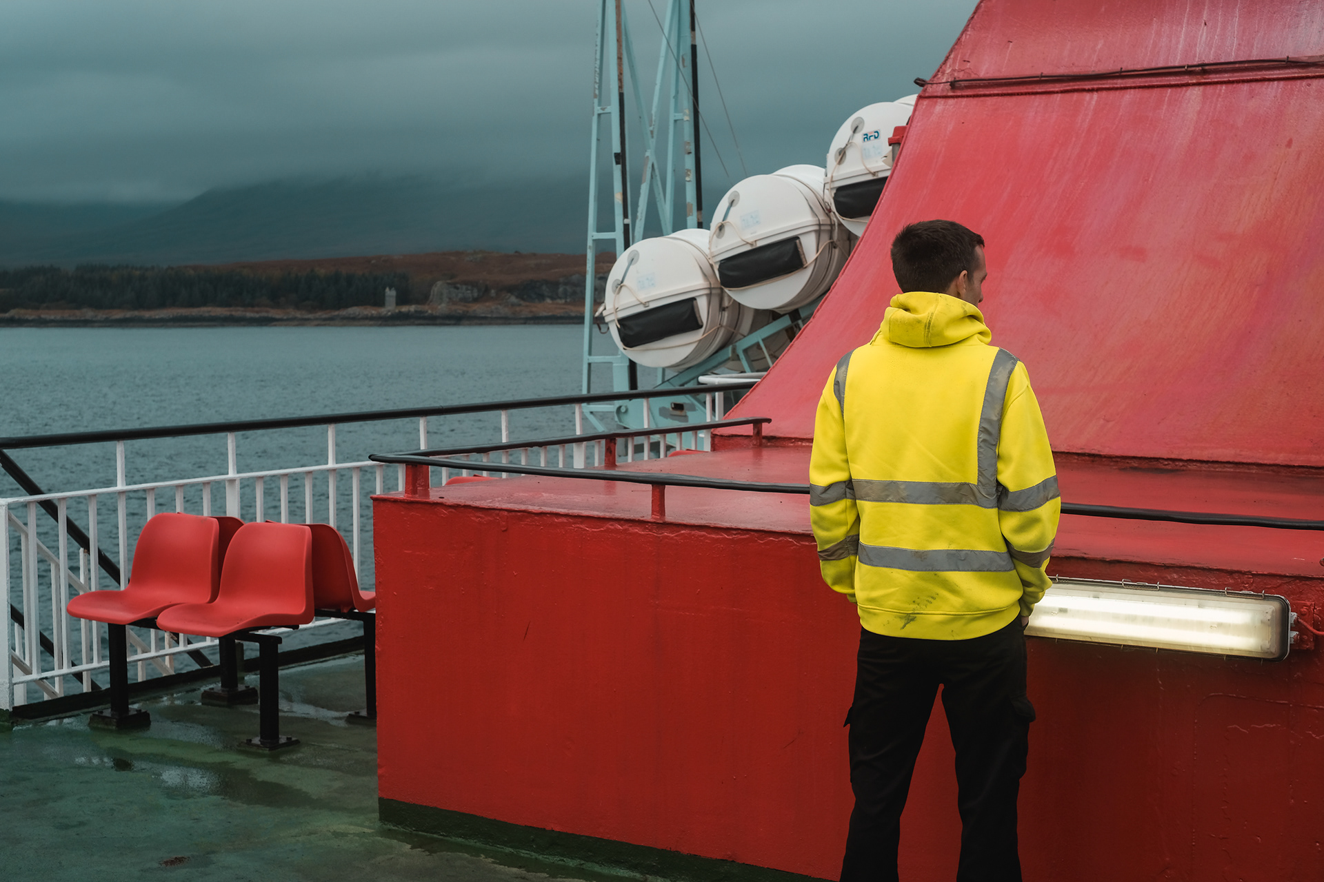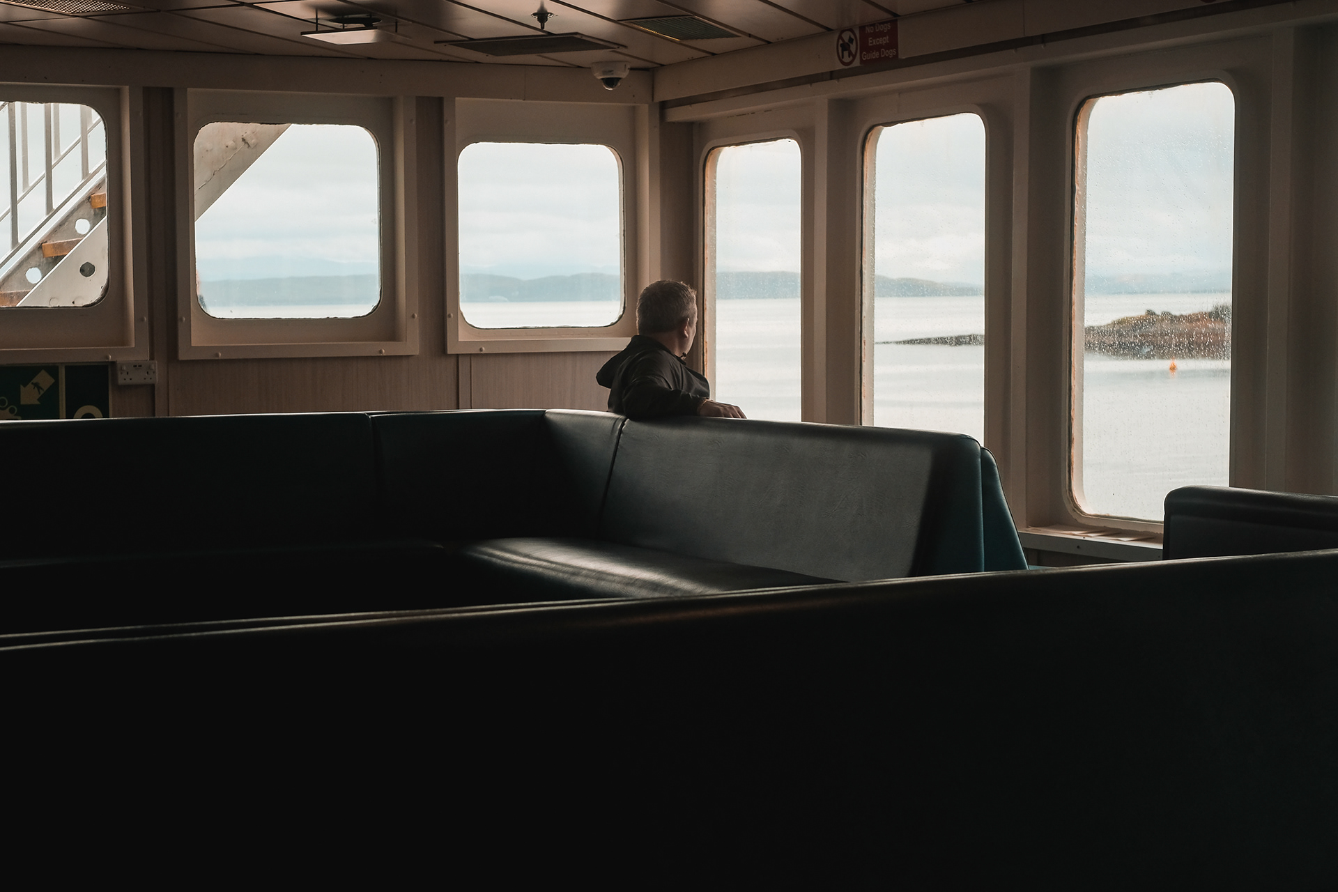 Documenting a day on the Calmac ferry from Oban, on Scotlands west coast, to Mull, the second-largest island of the Inner Hebrides. Candid portraits of passengers and crew.
