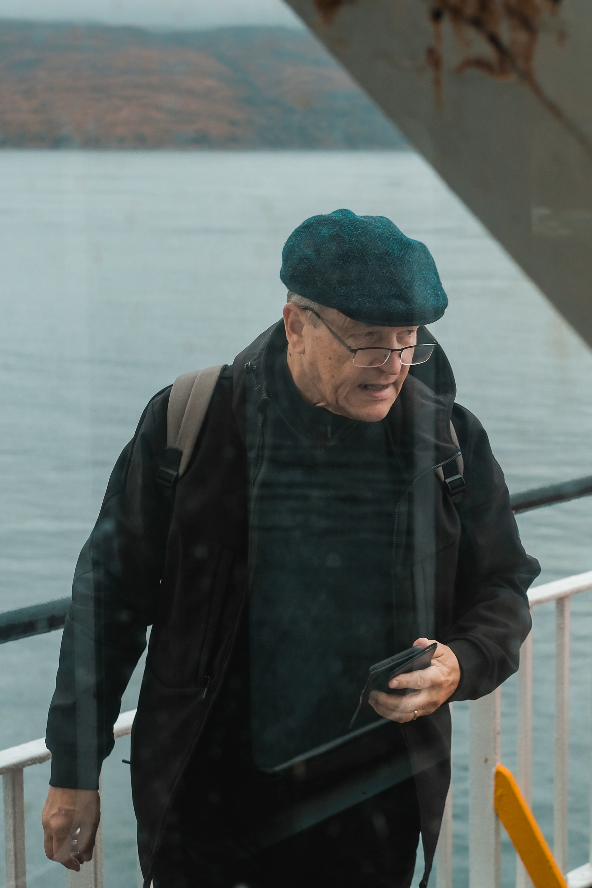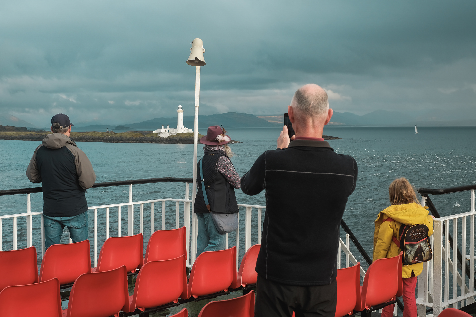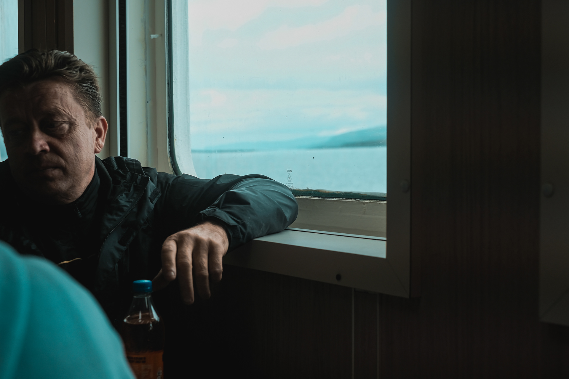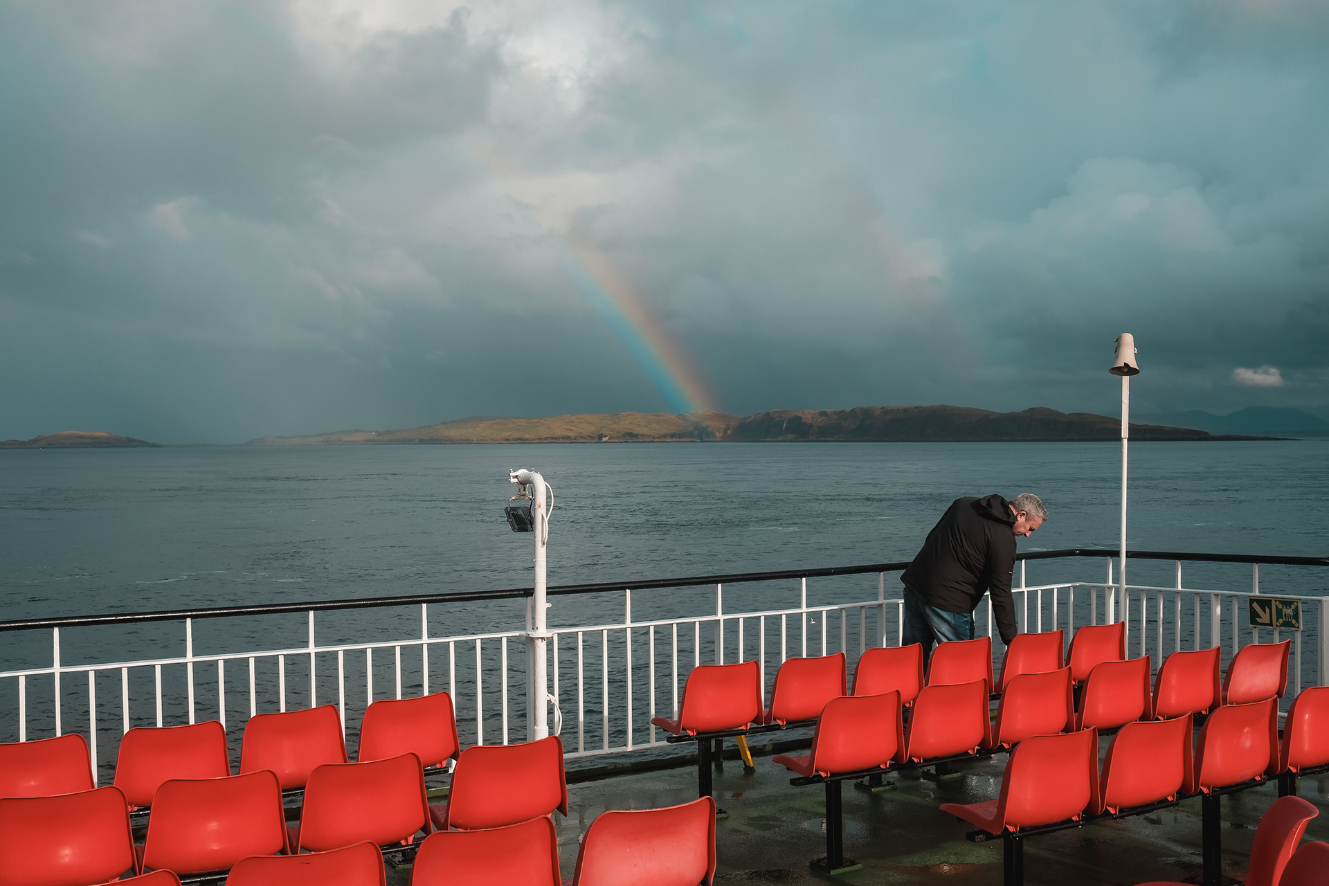 Documenting a day on the Calmac ferry from Oban, on Scotlands west coast, to Mull, the second-largest island of the Inner Hebrides. Candid portraits of passengers and crew.