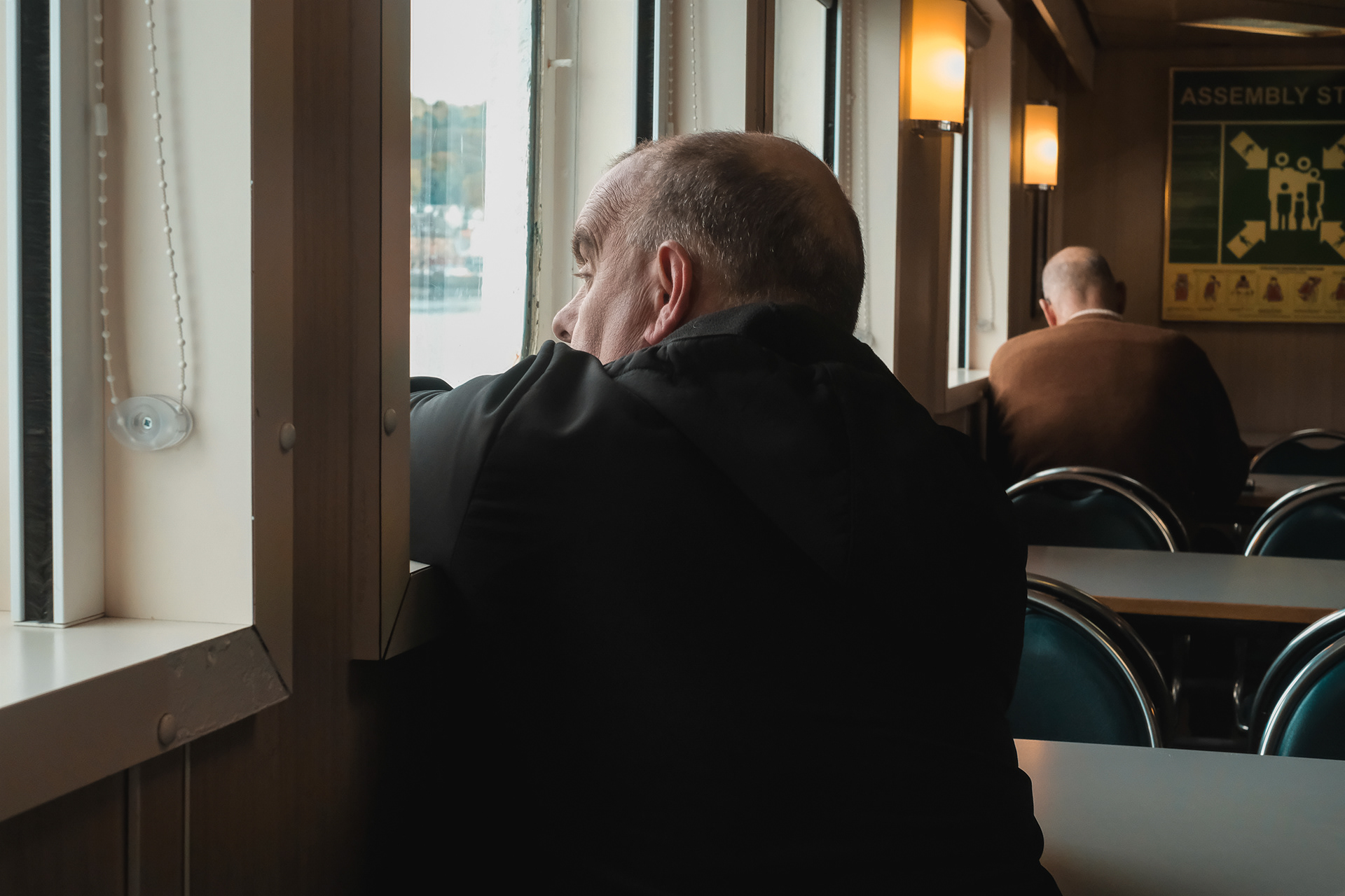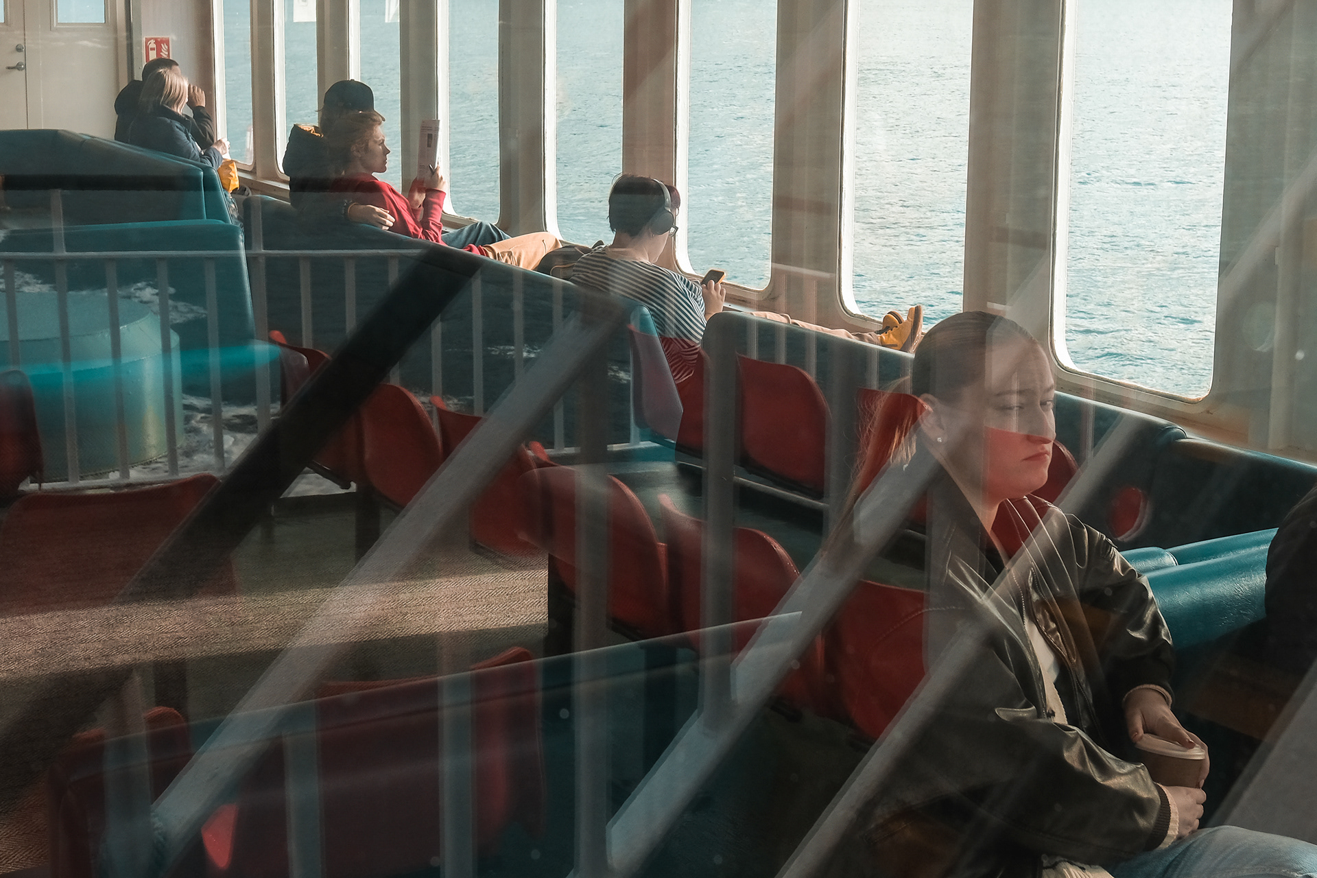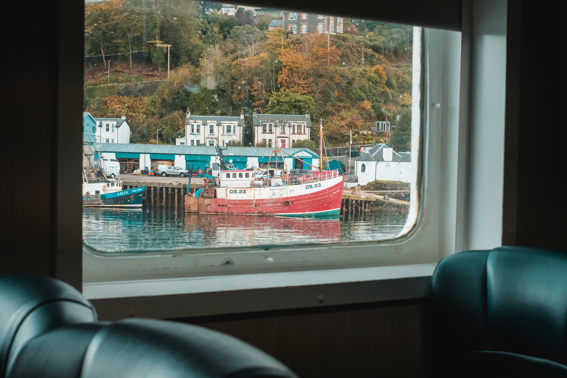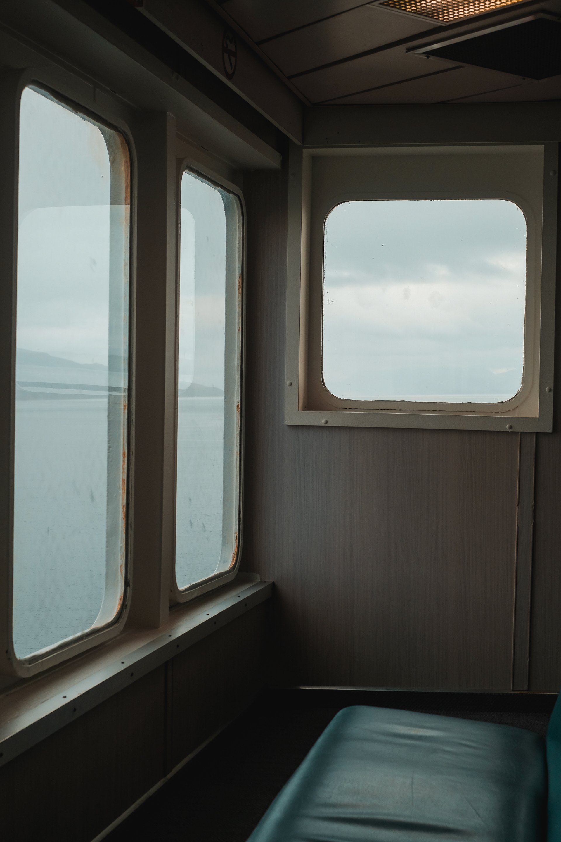 Documenting a day on the Calmac ferry from Oban, on Scotlands west coast, to Mull, the second-largest island of the Inner Hebrides. Candid portraits of passengers and crew.